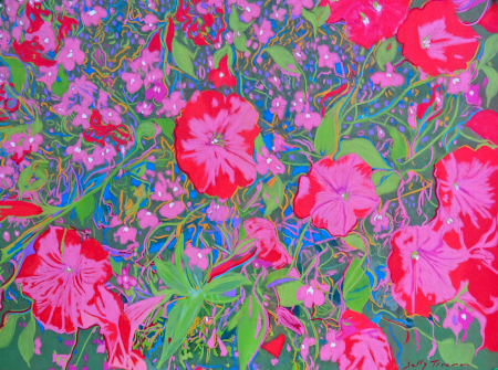 Sally Trueman - "No Room - Scarlet Petunias." H 33 x W 48 cm